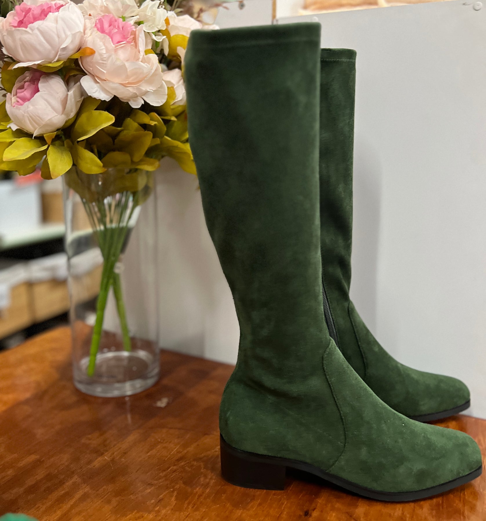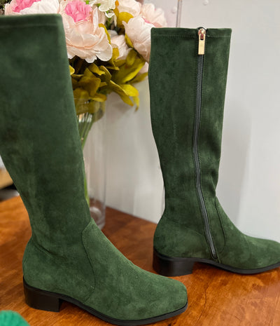 Yulara Boots Knee Length Green Microsuede - Isabella