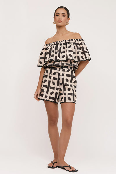 Regular price $129.95 Sale price $40.00 Save $89.95Adorne Printed Linen Shorts - Black & Beige