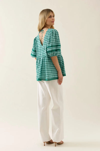 Regular price $99.95 Save $-99.95Refresh your wardrobe with the Aurora Frill Top in Myrtle a Khaki green from Isle of Mine, crafted in 100% lightweight cotton voile. This breezy top features a flattering high round neckline with a keyhole and button detail, complemented by soft gathering across the front and back yoke. Short sleeves with playful ruffles and delicate cotton trim detailing complete the design, offering a feminine and effortless silhouette. The vibrant paisley print brings a bold, bohemian flair, making it perfect for pairing with denim shorts, linen pants, or skirts. Ideal for warm weather styling, this top combines comfort and statement style in one.