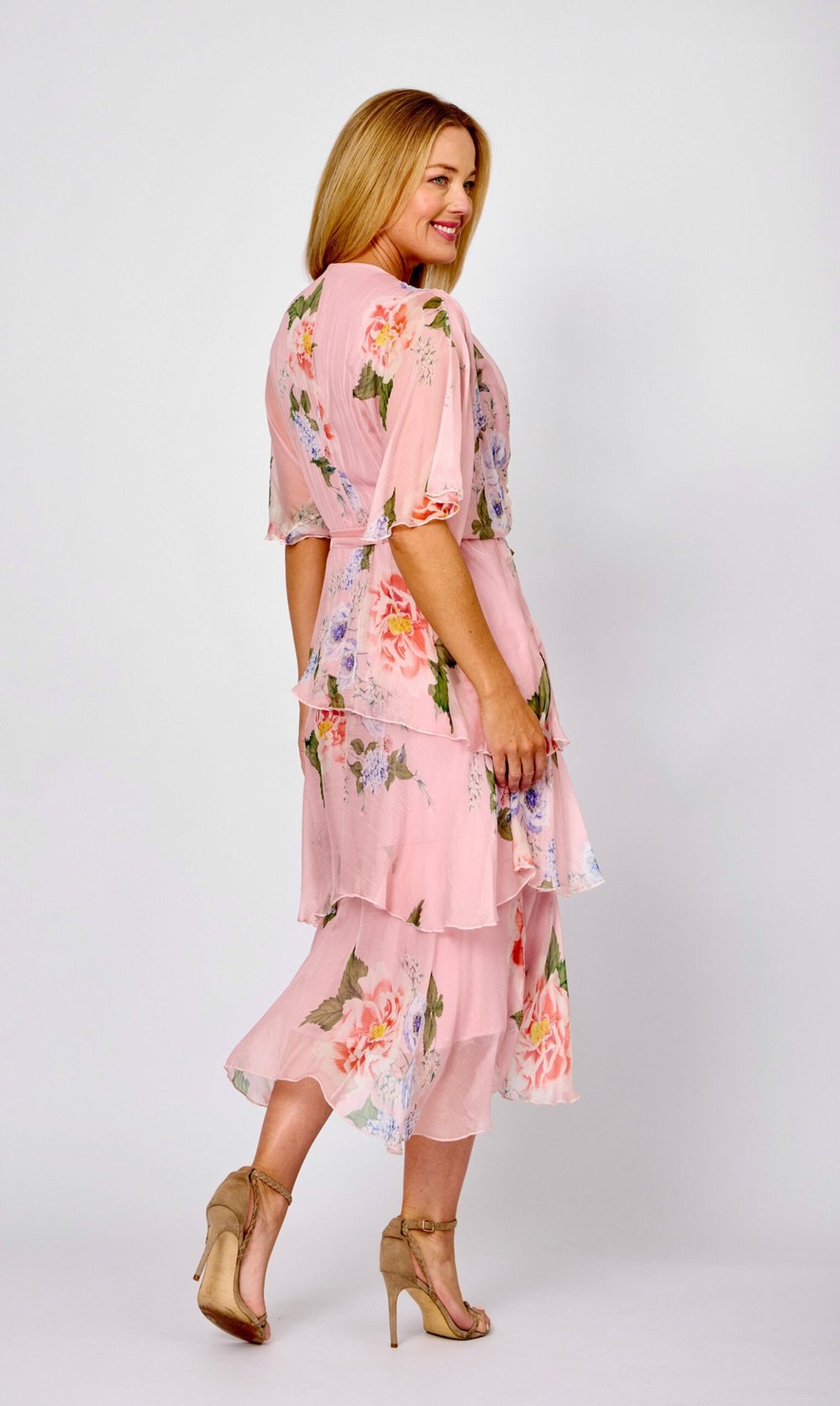 La Strada Lily Silk Blend Layered Dress Front View – Floral Event Dress for Weddings and Races
