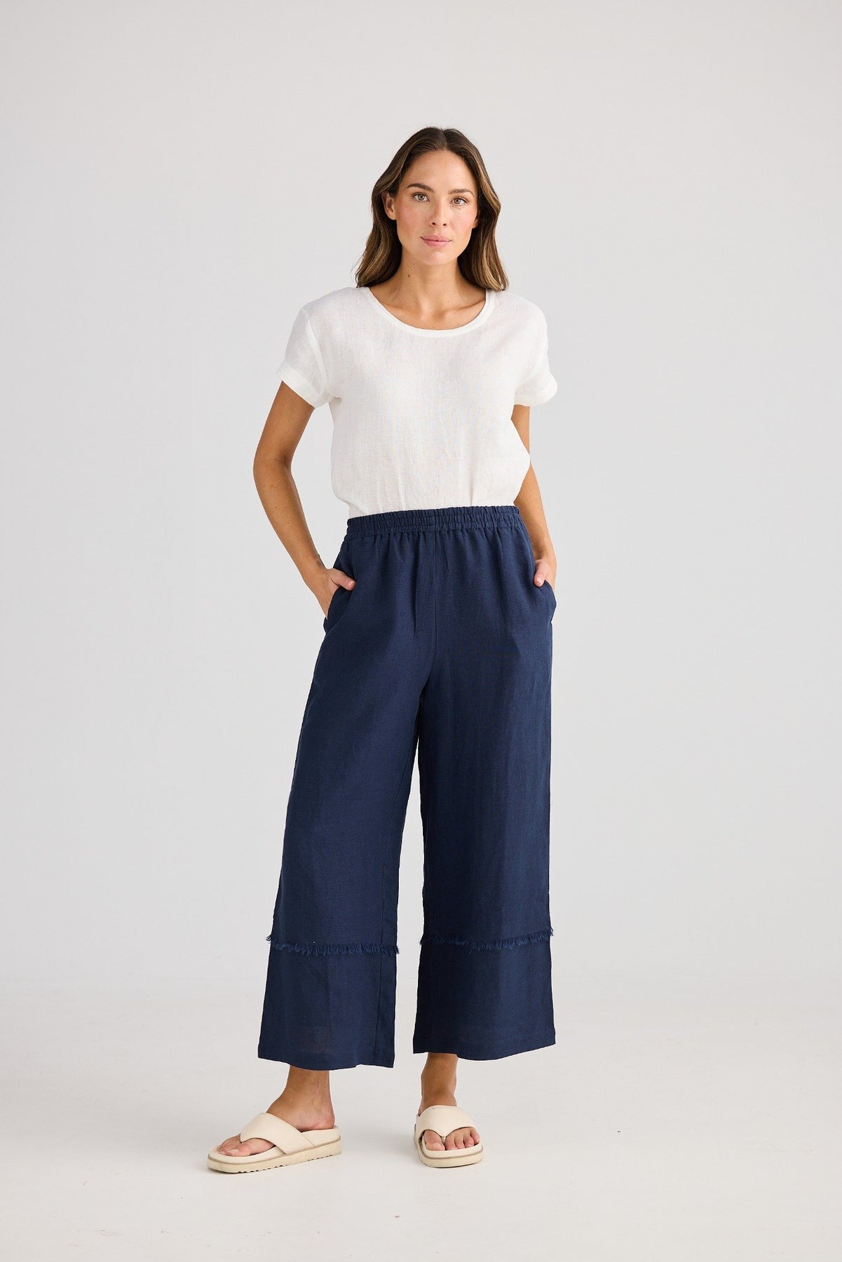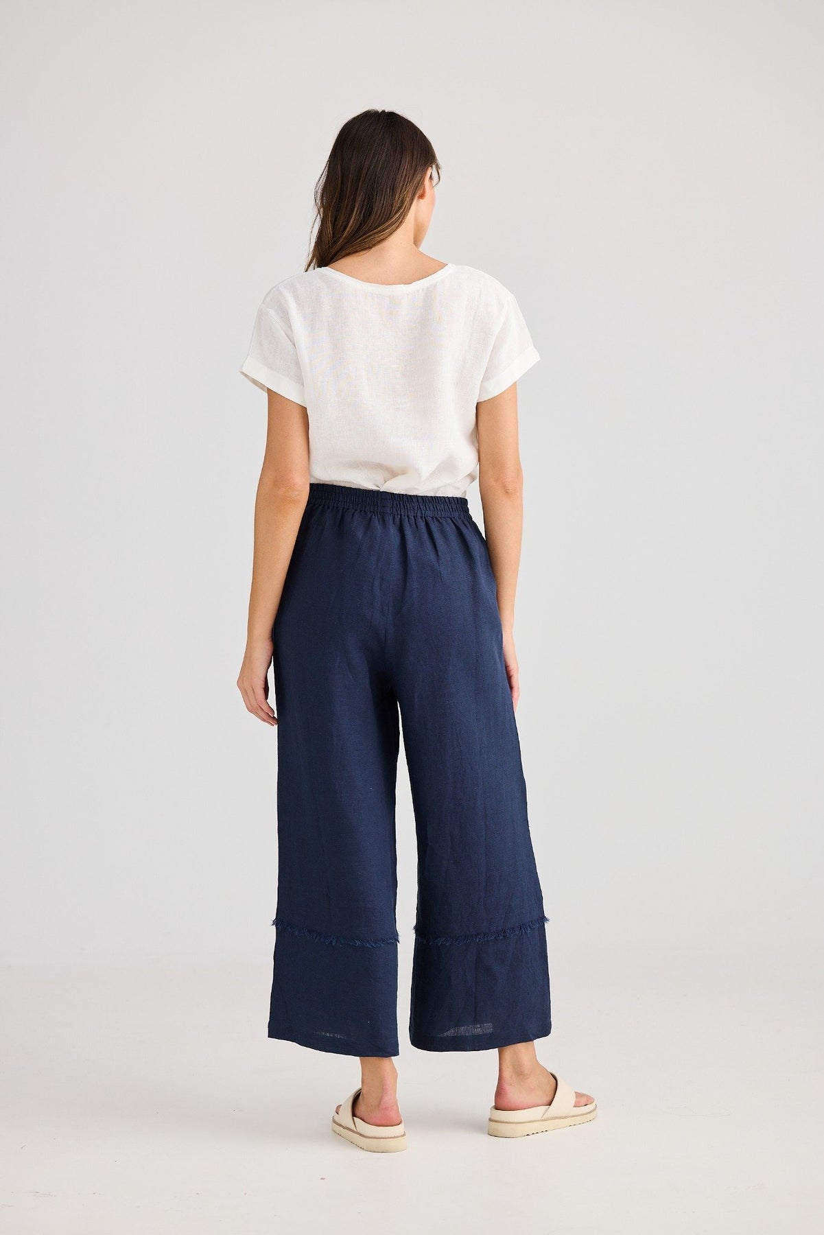 sailor-pants-navy-holiday-front.jpg – Holiday Sailor Pants Navy – women’s wide leg linen blend pants with elastic waistband