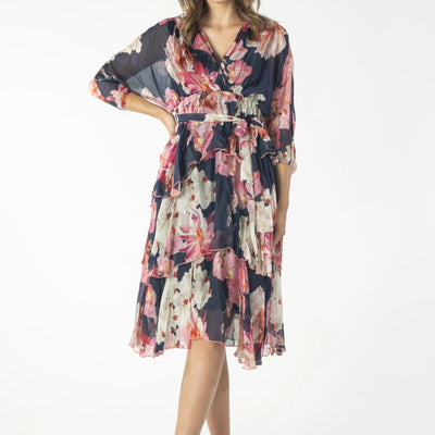 Vivid Layered Floral Dress Navy
