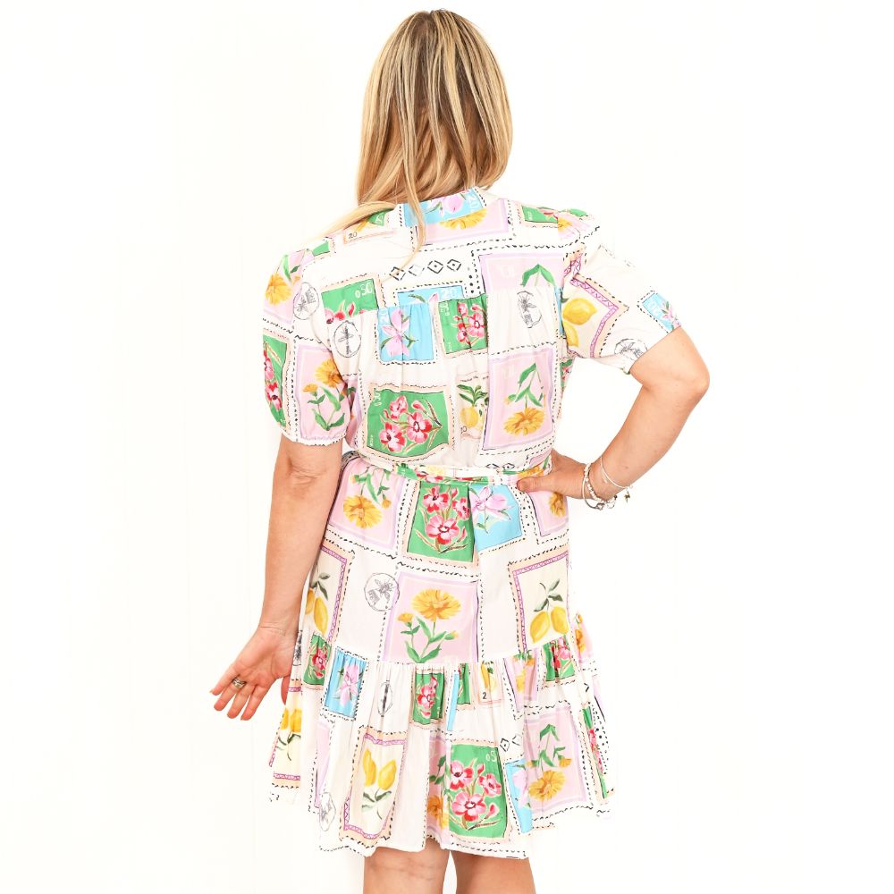 Regular price $139.00 Save $-139.00Fresh, pretty and full of playful colour, the Queen Bee McKenzie Dress from Palm Cove is a feel-good summer style made from breathable 100% cotton. Featuring a vibrant patchwork-style print with florals, lemons and postcard motifs, this dress is perfect for warm days, holidays and easy weekend wear.