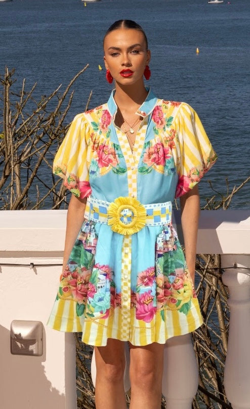 Regular price $129.95 Save $-129.95The Positano Sundress in Blue by Mia Milani captures the spirit of summer in every stitch. With its picturesque coastal print, adjustable straps, and shirred back panel for a flattering fit, this dress blends comfort and sophistication effortlessly. The soft, lightweight linen-blend fabric flows beautifully, making it ideal for sunny days, weekend escapes, and long lunches by the sea. Finished with a chic exposed gold back zipper and cotton lining, it’s your go-to statement sundress of the season.