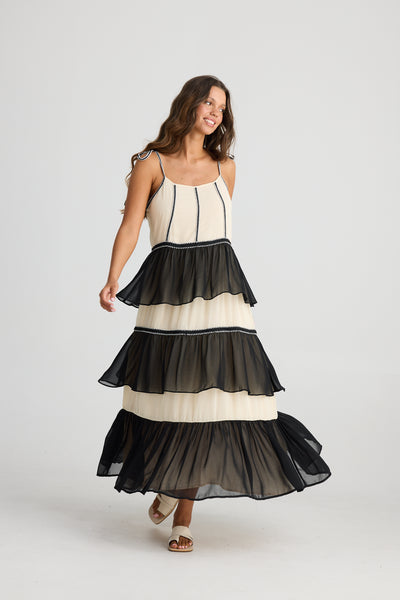 Cala Cotton Dress Black & Off White - Talisman