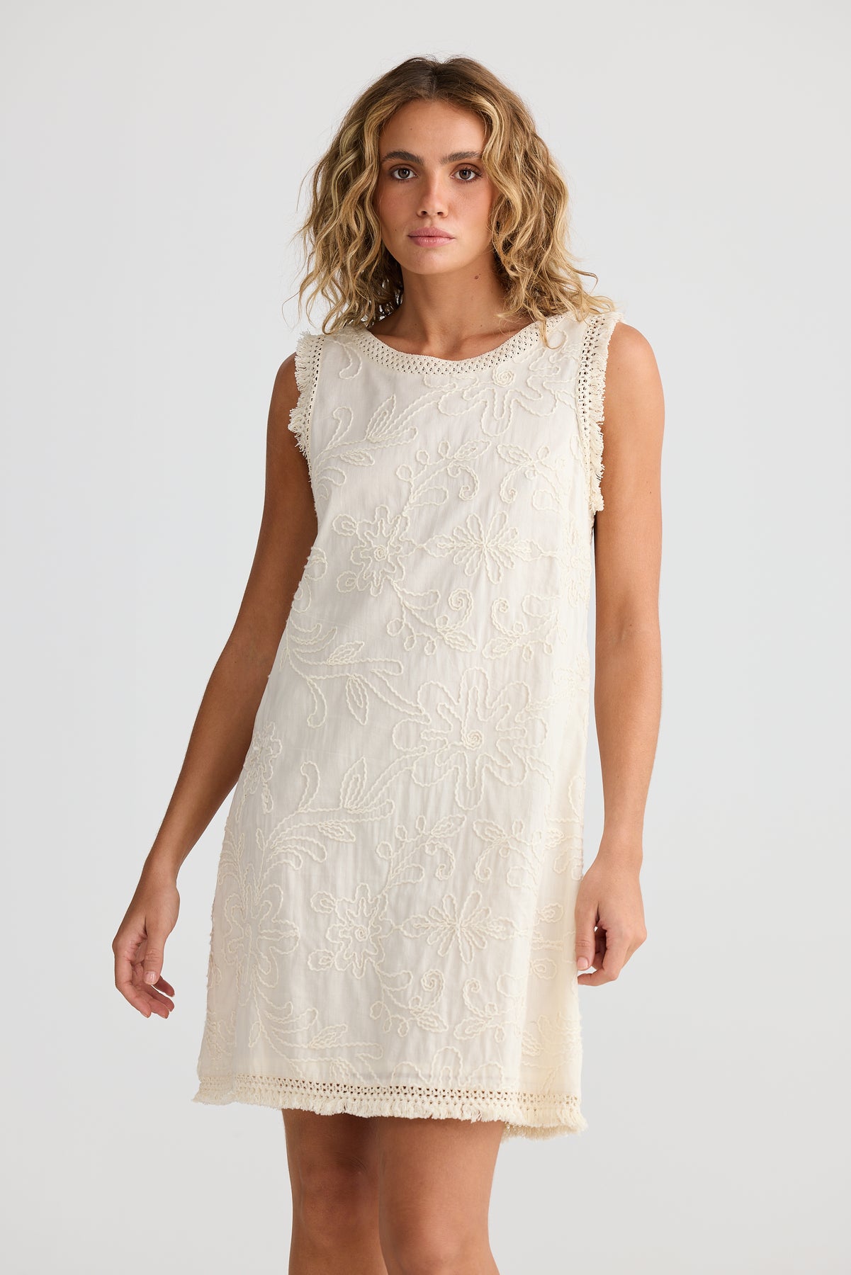 Regular price $229.95 Save $-229.95Elevate your summer wardrobe with the Chantilly Dress Natural Embroidery from Talisman – the ultimate blend of bohemian elegance and timeless comfort.