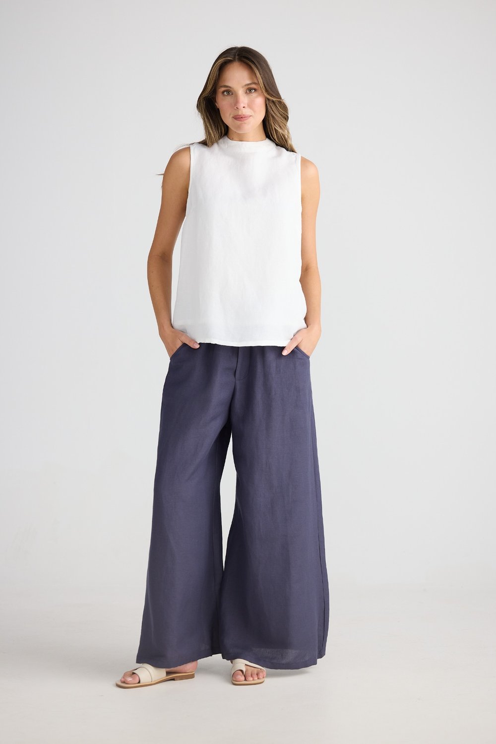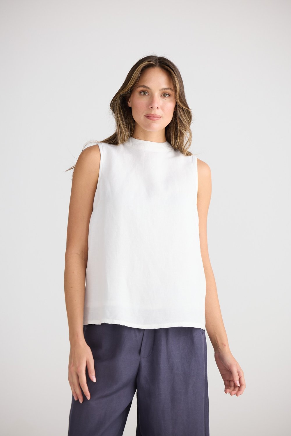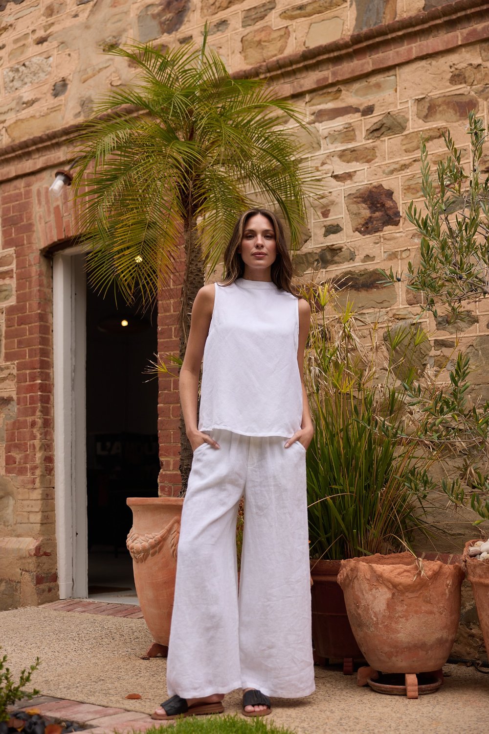 Regular price $139.95 Save $-139.95Elegant and versatile, the Adel Top by Shanty Co. in White is a timeless wardrobe essential. Designed with a modern high neckline and a statement gathered back tie detail, this sleeveless top offers both polish and comfort. The soft linen-viscose blend drapes beautifully, making it the perfect piece to dress up or down for any occasion.