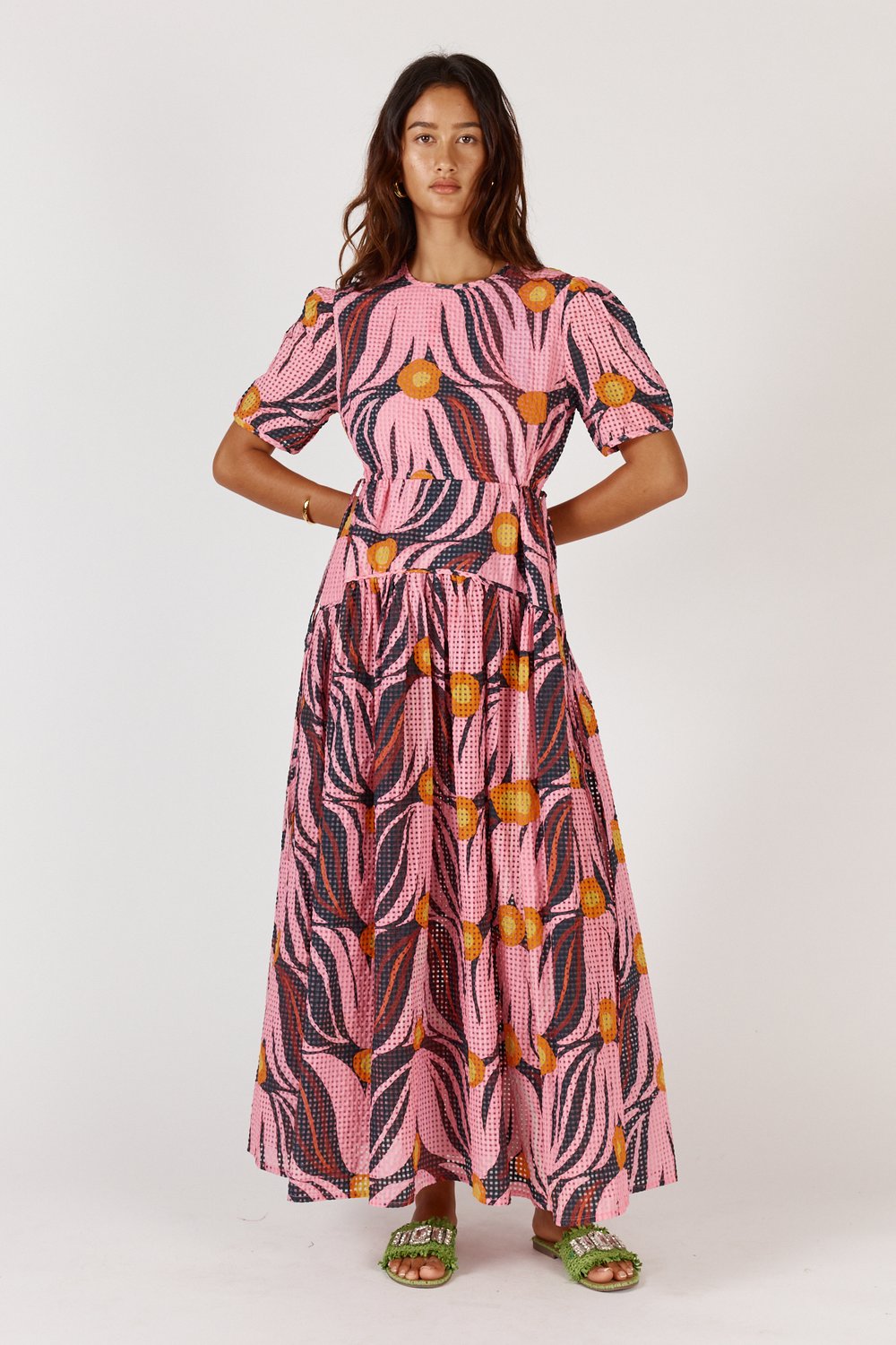 Regular price $209.95 Save $-209.95Bright, bold, and effortlessly feminine — the Tulip Maxi Dress by Rubyyaya is a standout piece for any summer occasion. With a stunning pink, orange, and black abstract floral print, this dress combines playful colour with elegant structure. The fitted bodice and waist and flowing tiered skirt create a flattering silhouette, while the short puff sleeves add a touch of modern charm. Perfect for brunch dates, holidays, or relaxed event wear, the Tulip Maxi Dress is a celebration of vibrant Australian design.